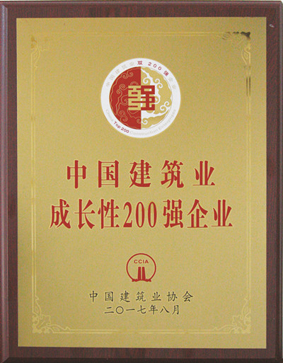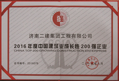 喜訊-2016年度中國建筑業(yè)成長性200強(qiáng)企業(yè)